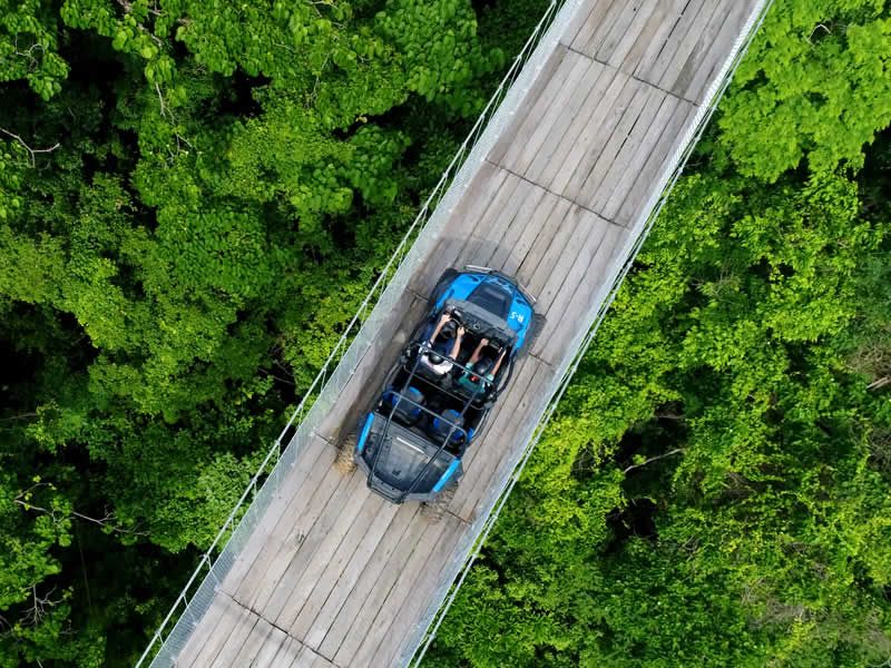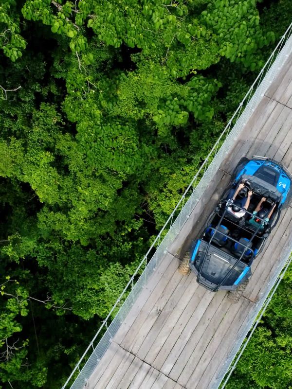 A bordo de un vehículo todoterreno cruzarás el puente colgante más largo del mundo con 470 metros de largo y 150 metros de altura, donde la adrenalina te hará disfrutar de un recorrido lleno de aventura por territorios cubiertos de terracería y un escenario natural que te robará el aliento complementado con una hermosa cascada, perfecta para nadar con tu familia o amigos.
